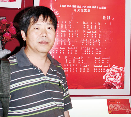 韓雪作詞的歌曲《最美的人》是他致力于道德文明建設的代表性作品,“一顆柔軟的心送出多少溫馨,風雨中有你扶直的身軀,生命中流淌著你滾燙的體溫。開墾每個早晨都變成希望的開始,牽出每個黃昏讓溫暖彌合傷痕。啊!捧出你的情,獻出你的愛。花開在心里,給世界一片芳芬。啊!捧出你的情,獻出你的愛。心貼著心啊喊一聲,你是最美的人……”這首感動過無數人的歌源自韓雪對生活的體驗:最美老師、最美司機、最美戰士……一個個感動他的道德模范的故事,讓他寫出了這首歌,沒想到,今天,他也成了縣里聞名全國的“最美的人”!“作家不僅要寫得好,做人更要做得好!道德的倡導者,首先要做踐行者。”韓雪對記者說,這話如此簡單,卻又如此有力。