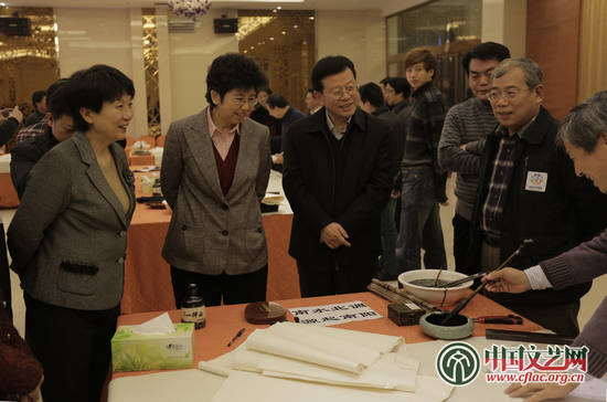 與會領導在現場觀摩書畫家創作。中國文藝志愿者協會 桑健博 攝