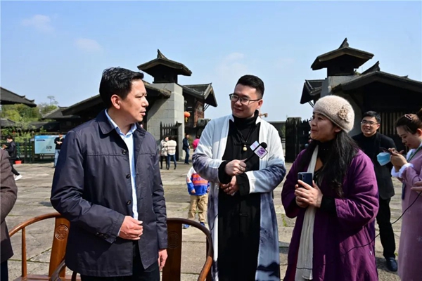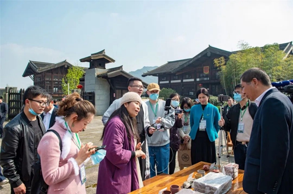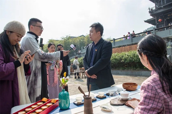 “這是我們?nèi)襟w直播和線上銷售聯(lián)動(dòng)的全新嘗試,在活動(dòng)開始前,我們?cè)谌h政務(wù)平臺(tái)@長(zhǎng)興發(fā)布微博矩陣發(fā)起#紫筍茶的前世今生#話題,閱讀量已近2000萬。直播開始半小時(shí),觀看人數(shù)就已經(jīng)突破了60萬。”長(zhǎng)興縣委宣傳部副部長(zhǎng)、文聯(lián)主席劉月琴說,“這場(chǎng)跨越千年的古今對(duì)話,用文藝搭臺(tái),經(jīng)濟(jì)唱戲,不僅影響力和經(jīng)濟(jì)效益遠(yuǎn)超于傳統(tǒng)的線下活動(dòng),也激勵(lì)著我們不斷傳承創(chuàng)新,讓越來越多的人感受長(zhǎng)興茶文化、茶旅游、茶產(chǎn)業(yè)的豐富和多彩。”
