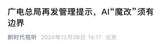 12月7日,廣電總局網絡視聽司發布《管理提示(AI魔改)》。