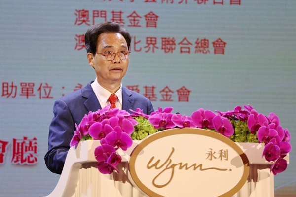澳門文化界聯(lián)合總會理事長、澳門蓮花衛(wèi)視臺長李自松致辭