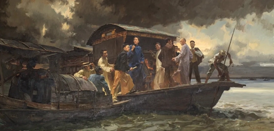 何紅舟、黃發祥《啟航》240×500cm油畫