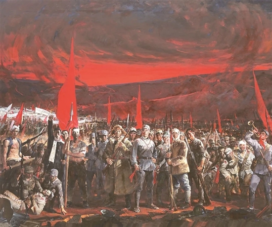 義勇軍進(jìn)行曲 油畫 2009年 400cm×480cm 全山石 翁誕憲 中國美術(shù)館藏