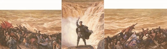 黃河大合唱——流亡·奮起·抗?fàn)?nbsp;油畫2009年 280cm×435cm×2 332cm×285cm詹建俊 葉 南 中國美術(shù)館藏