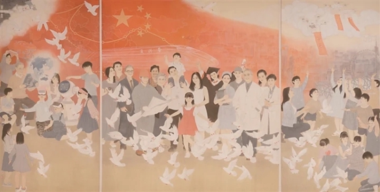 八十載歲月滄桑,銘記著中華民族從深重危難走向偉大崛起的歷史轉(zhuǎn)折。中國共產(chǎn)黨團(tuán)結(jié)帶領(lǐng)全國各族人民,發(fā)奮圖強(qiáng)、艱苦創(chuàng)業(yè),創(chuàng)造了無數(shù)奇跡。我們在堅(jiān)定維護(hù)世界和平與發(fā)展中謀求自身發(fā)展,積極推動構(gòu)建人類命運(yùn)共同體,讓和平的薪火代代相傳,讓發(fā)展的動力源源不斷,讓文明的光芒熠熠生輝。一批當(dāng)代美術(shù)作品以多元藝術(shù)形式,展現(xiàn)了偉大抗戰(zhàn)精神穿越時空的磅礴力量以及中國人民對和平的期盼和暢想。