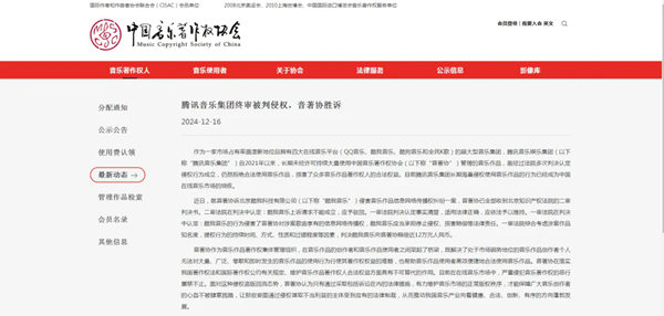 近日,就音著協訴北京酷我科技有限公司(以下稱“酷我音樂”)侵害音樂作品信息網絡傳播權糾紛一案,音著協已全部收到北京知識產權法院的二審判決書。二審法院在判決中認定:酷我音樂上訴請求不能成立,應予駁回。一審法院判決認定事實清楚,適用法律正確,應依法予以維持。一審法院在判決中認定:酷我音樂的行為侵害了音著協對涉案歌曲享有的信息網絡傳播權,酷我音樂應當承擔停止侵權、損害賠償等法律責任。一審法院綜合考慮涉案作品知名度,侵權行為的持續時間、方式、性質和過錯程度等因素,判決酷我音樂向音著協賠償近12萬元人民幣。 音著協作為音樂作品著作權集體管理組織,在音樂作品的創作者和音樂作品使用者之間架起了橋梁,既解決了處于市場弱勢地位的音樂作品創作者個人無法對大量、廣泛、零散和即時發生的音樂作品的使用行為行使其著作權權益的難題,也幫助音樂作品使用者高效便捷地合法使用音樂作品。音著協在落實我國著作權法和國際著作權公約有關規定、維護音樂作品著作權人合法權益方面具有不可替代的作用。面對侵權盜版回流態勢,音著協認為只有通過采取包括訴訟在內的法律措施,有力維護音樂市場的正常版權秩序,才能保障廣大音樂創作者的心血不被肆意踐踏,讓那些妄圖通過侵權謀取不當利益的主體受到應有的法律制裁,從而推動我國音樂產業向著健康、合法、創新、有序的方向蓬勃發展。 據音著協官網消息,自2023年以來,音著協對包括酷我、酷狗、QQ音樂等騰訊音樂多家音樂平臺提起了多起維權訴訟。在已經生效的判決中,法院全部判決騰訊音樂集團旗下平臺構成侵權: 2024年4月,北京互聯網法院就音著協起訴騰訊音樂旗下的酷我侵權使用音著協管理的音樂作品的五個案件作出一審判決,均判決酷我承擔侵權賠償的法律責任。在該五個案件中,酷我音樂被判賠償音著協經濟損失47000元,合理開支24000余元。 2024年8月,音著協收到廣東省深圳市南山區人民法院一審判決書,法院審理認定騰訊音樂的行為侵犯了涉案音樂作品的信息網絡傳播權,應承擔停止侵權并賠償損失共計人民幣34000余元。 2024年9月,音著協收到廣東省深圳市南山區人民法院判決書,法院審理認定騰訊公司的行為侵犯了涉案音樂作品的信息網絡傳播權,應承擔停止侵權并賠償損失共計人民幣65000余元。