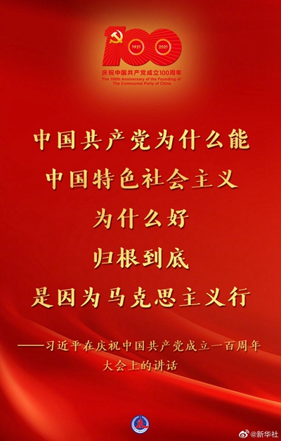 習近平在慶祝中國共產黨成立一百周年大會上的講話金句