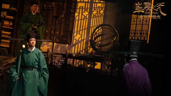 沉浸式舞臺劇《華夏之光·文明的燭火》講述年輕記者齊觀深度參與高海拔宇宙線觀測站“拉索”的建設報道,見證了“拉索”捕獲來自“蟹狀星云”超高能光子信號的歷史性時刻。正是這次“捕獲”,觸發了一場時空穿越之旅。齊觀來到北宋,親歷蘇頌等科學家對“無關客星”的觀測與記錄。面對天象異變,蘇頌堅持科學精神,力排眾議,為觀測浩瀚宇宙,探索未知,推動“水運儀象臺”的研制。