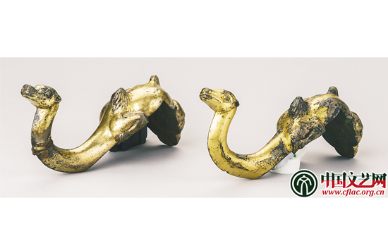 鎏金青銅駱駝形鈕鐘架構(gòu)件(西漢)