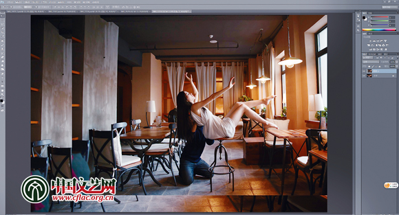 在PS里打開場景圖和人物圖,按住Shift鍵用鼠標將人物圖拖到場景圖當中。這樣兩張圖就會完全對上。