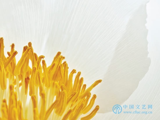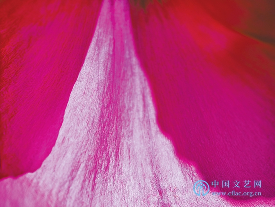 微距拍攝中的偶然性、隨機性是無法完全消除的,王昆峰的拍攝往往不是看到了什么才拍,而是在拍的過程中才看到是什么,甚至在拍攝放大后才完全看到拍了什么。因此這些作品許多是無法重復的,這會增加作品的價值,也使每一次拍攝都有面對未知的緊張與期待。他不依靠后期,力求充分顯示攝影這一視覺手段的固有特征,影像在后期只做剪裁和整體微調。他拒絕了使用多次曝光的建議,他說攝影就要在“咔嚓”一下中完成。全部拍攝他都始終“固執(zhí)己見”。他把激情洋溢的拍攝置于嚴謹?shù)目茖W精神之上,把高像素相機的表現(xiàn)力盡量地發(fā)揮出來,并在逐步得心應手的實驗探索中,盡量比別人走得更遠,這使他的微距牡丹最終打上自己的烙印,成為自己“特殊的說法”。從王昆峰的作品中,我們可以看出他是一個很理性又很執(zhí)著的人,他的用心和耐心都滲透在《絲路花語》之中,讓我們感動。