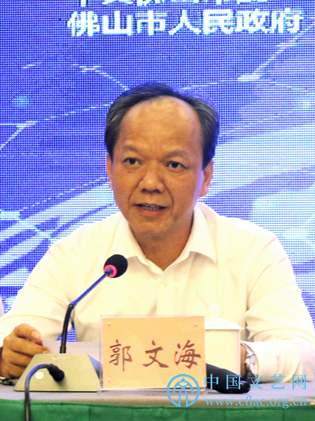 8月9日,第27屆中國金雞百花電影節暨第34屆大眾電影百花獎新聞發布會在京舉行。圖為佛山市委常委、宣傳部部長、順德區委書記郭文海通報本屆電影節籌備工作情況。中國文藝網 韓雪竹 攝
