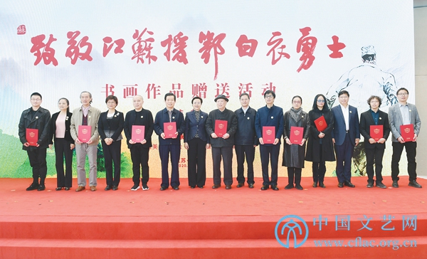 為頌揚江蘇援鄂白衣勇士國有難召必至、戰定勝的家國情懷和無懼無畏的戰斗意志、高度負責的工作態度、精湛高尚的醫術醫德,江蘇省委宣傳部、江蘇省衛健委、江蘇省文聯、新華日報社聯合組織了“致敬江蘇援鄂白衣勇士”書畫作品贈送活動,活動面向江蘇全省的中國美協、中國書協會員征集作品,號召江蘇廣大藝術家行動起來,當江蘇援鄂醫務工作者凱旋時,向他們每人贈送一件書畫作品。