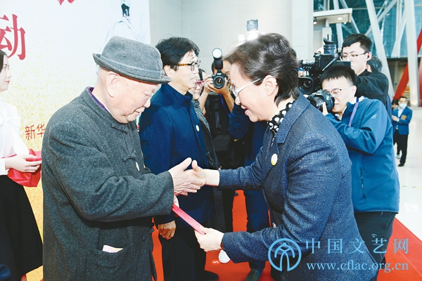 江蘇省委常委、宣傳部部長王燕文為中國書協顧問、省書協名譽主席尉天池頒發捐贈證書