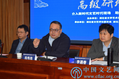 肖偉池在講話中指出,文藝評論界要積極引導文藝創作導向,把握文化的發展方向。一要落實習近平總書記關于文藝評論工作重要指示批示。文藝評論家協會作為貫徹新時代文藝評論工作的重要部門,要加強人才隊伍建設,引導社會審美追求。二要有效引導創作。當前,文學創作的陣地已逐漸轉移到互聯網上,要有互聯網意識和互聯網思維,加強互聯網文藝評論,加強意識形態陣地安全,開展線下文藝評論工作的同時加大對網絡文藝評論工作的關注。三要重視體制外新文藝群體,把握基層文藝創作導向,關心關注基層文藝和群眾性基礎工作。四要關注文藝現場。文藝評論工作者要提前介入文藝創作現場,在采風、作品策劃、創作等環節中,盡早發揮文藝評論引導文藝創作的功能,為創作出無愧于時代的優秀文藝作品而努力奮斗。最后,他表示,湖北評協在經費不足的情況下,本次研修班給予了大力支持,同時對湖北省第二師范學院給予的多方支持和服務保障工作表示感謝,祝鄂疆兩地中青年文藝評論家高級研修班圓滿成功。
