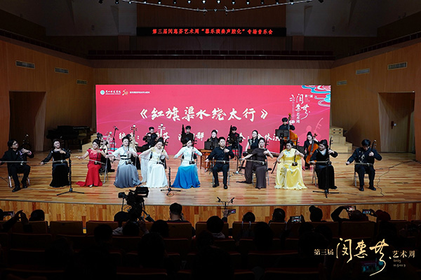 藝術(shù)周期間舉辦的弘毅之光:“此曲只應(yīng)天上有”——《長城隨想》講述式音樂會由劉光宇主講,特邀嘉賓劉振學(xué)、朱昌耀演奏《長城隨想》第一、二樂章,劉光宇演奏《長城隨想》第三、四樂章。通過邊講邊拉、講演結(jié)合、視聽并舉、賞析拾味,深入閔惠芬音樂的典范性、時(shí)代性、聲腔化、人民性。“器樂聲腔化”音樂會上,《迷胡調(diào)》《逍遙津》《憶秦娥》《寒鴉戲水》《游園》《昭君出塞》《紅旗渠水繞太行》等經(jīng)典作品與《巾幗》《蘇園》等新創(chuàng)作品交相輝映,讓觀眾聆聽中國民族音樂的血脈傳承。