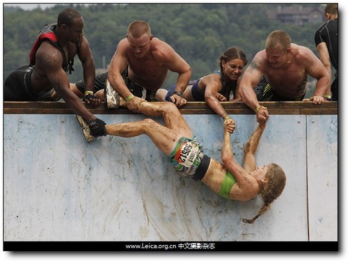 拍攝作品:“Tough Mudder 比賽中,4名參賽者在幫助另一名參賽者逾越障礙。”