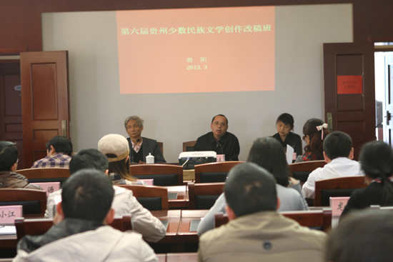 貴州文學院原常務副院長、《貴州作家》主編苑坪玉就貴州少數民族作家具備的政策優勢、獨特的思維優勢、文化優勢等作了講座。講座深入淺出,將理論與創作相結合、實踐與創作相比較,既有事實的闡述,又有理論的深化,擴展了學員們的思維方式,鼓勵的學員們的創作自信。